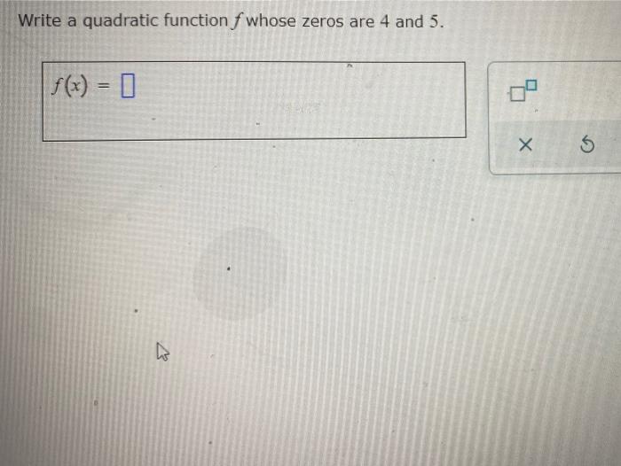 Solved Write A Quadratic Function F Whose Zeros Are 4 And 5 Chegg Com